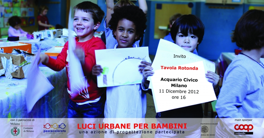 UN INTERVENTO DI PROGETTAZIONE PARTECIPATA Una “luce urbana” a misura di bambino e dai bambini stessi progettato, una possibilità ulteriore di rendere partecipi genitori, piccoli utenti e scuole alle problematiche della città e alle sue possibili risoluzioni. Partecipano a questa azione collettiva l’Università di Design Politecnico di Milano con i suoi studenti del corso di Light Art e Design della luce tenuto dalla Prof. Gisella Gellini e il prof. Gianni Forcolini. I ragazzi con i loro strumenti tecnici e la loro fantasia completeranno i pensieri dei bambini rendendoli esecutivi durante il corso al Politecnico e, successivamente , realizzando i prototipi. UN INTERVENTO DI PROGETTAZIONE PARTECIPATA” CHE PARTIRA’ UFFICIALMENTE L’11 DICEMBRE ALL’ACQUARIO CIVICO DI MILANO con la presenza di tutti gli attori partecipanti al progetto quali Comune di Milano, Scuole primarie, Genitori, Università e Studenti. Attraverso una azione collettiva si arriverà ad una scelta congiunta: individuare le 20 idee più richieste dai bambini da ingegnerizzare e realizzare. Un momento di ascolto delle esigenze, desideri e sogni di tutti.